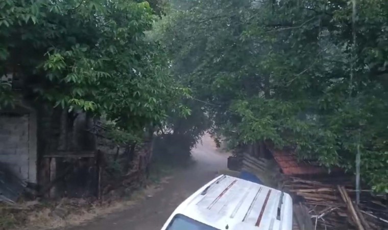 Bolu’nun Mudurnu ilçesinde aniden bastıran sağanak köy yollarını göle çevirdi.