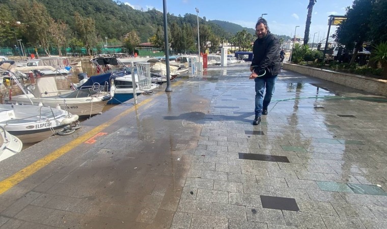 Marmaris’te sabah fırtınanın ardından yağan şiddetli sağanak yağışlar hayatı olumsuz etkiledi, ilçe merkezi ve kırsal mahallelerde su baskınlarına sebep oldu. Derelerden denize akan balçıklı su sebebiyle denizin rengi kahverengiye dönüştü. Özellikle kapalı çarşıda tentelerden akan sular iş yerlerinin içine girerek malzemelere zarar verdi. Esnaf, kapalı çarşının üzerindeki olukların yeterince temizlenmediğini ve kontrol edilmediğini ifade ederek, yetkililerden düzenli bakım yapılmasını istedi.