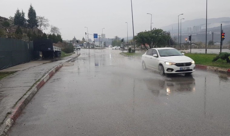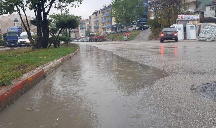 Karabük’te öğle saatlerinden itibaren etkili olan sağanak yağmur sonrası yollarda su birikintileri oluştu.