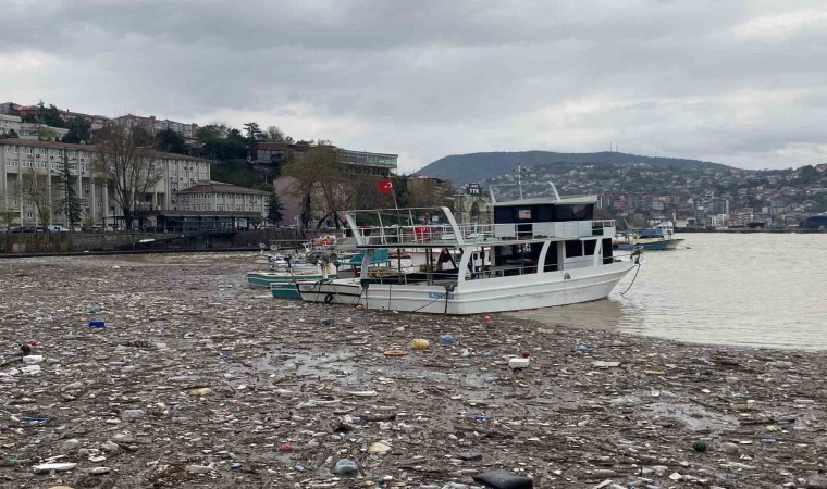 Zonguldak’ta etkili olan sağanak yağış ve fırtına nedeniyle sürüklenen odun parçaları ve plastik atıklar sahilde kirlilik oluşturdu.