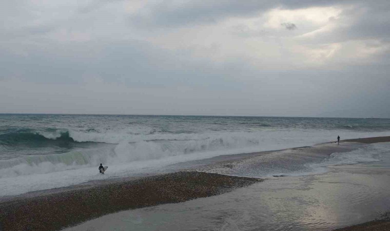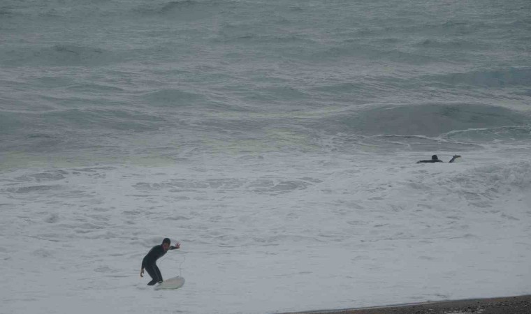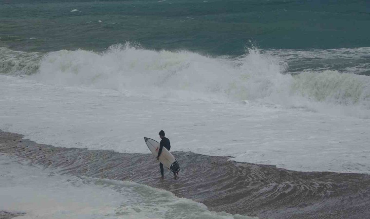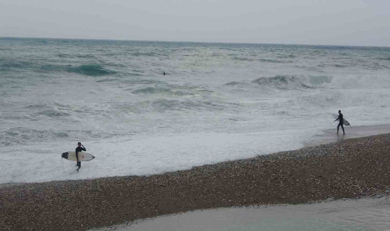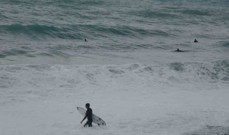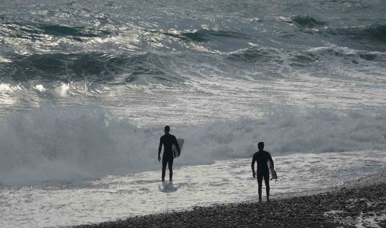 Türkiye’nin büyük bölümünde soğuk ve yağışlı hava etkisini gösterirken, Antalya’da güne yağış ve rüzgarlı bir havayla uyandı. Fırtına ile birlikte dünyaca ünlü Konyaaltı Sahili’nde dev dalgalar oluştu. Bu dalgaları fırsat bilen bir grup sörfçü, Boğaçayı’nın denizle buluştuğu noktaya geldi. Havanın 17, deniz suyu sıcaklığının 20,5 derece ölçüldüğü ve dalga boyunun 3 metreyi aştığı sahilde sörfçüler bu anları keyfe çevirdi. Andrenalini yüksek sörf tutkunu sporcular, sörf tahtalarıyla kendilerini dev dalgaların arasına bıraktı. Yaklaşık 1,5 saat antrenman yapan sporcuların dalgaların arasında kaybolduğu anlar heyecanlı anların yaşanmasına neden oldu. Sporcuları, çevredeki vatandaşlar da ilgiyle izledi. Bir vatandaş ise dalgalı denizde yüzme girişiminde bulunsa da başarılı olamadı.