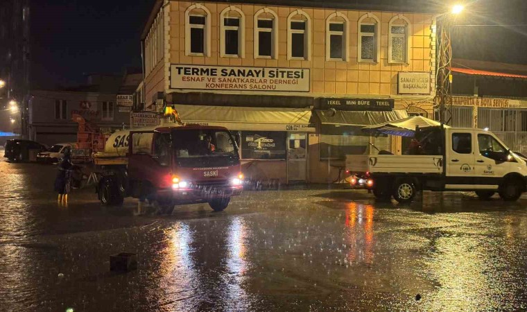 Meteorolojinin yaptığı sağanak yağış uyarısı sonrası Terme Belediyesi ekiplerinin çalışmalara başladığını ifade eden Terme Belediye Başkanı Şenol Kul, “Sağanak yağış uyarısıyla beraber Terme Belediyesi olarak vatandaşlarımızın mağdur olmaması için hareket planımızı oluşturduk. Kot farkından dolayı su taşkınlığı yaşanabilecek noktaları tespit ettik ve ilk andan itibaren gerekli çalışmalarımızı tamamladık. Yaklaşık 1.5 saat süren ve aralıklı olarak devam eden yağış sürecinde Terme Belediyesi ve SASKİ ekiplerimizle sahada teyakkuzdayız” dedi.
