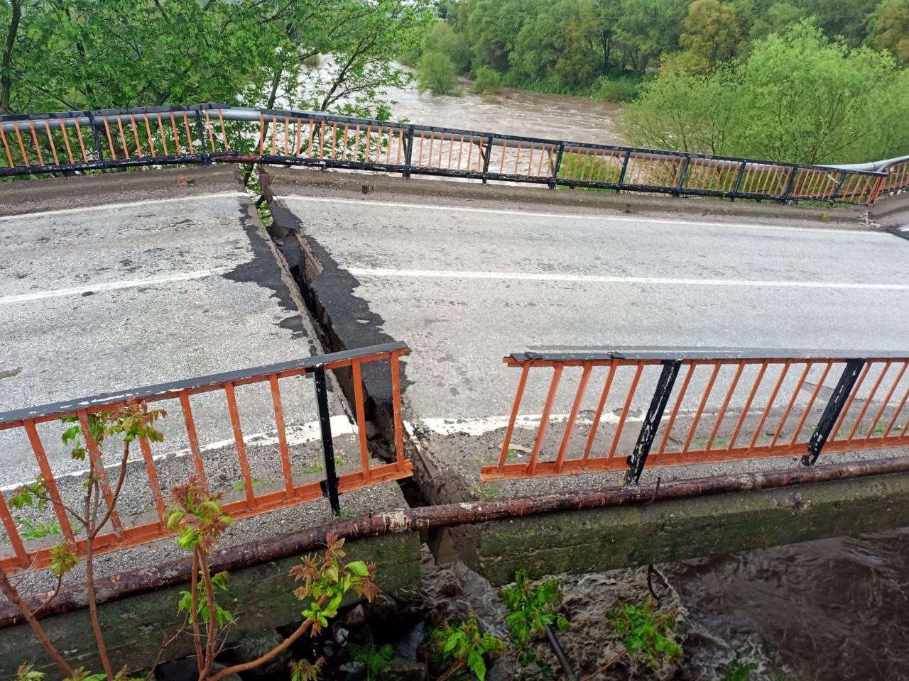 Sağanak yağışlar köprüye zarar verdi