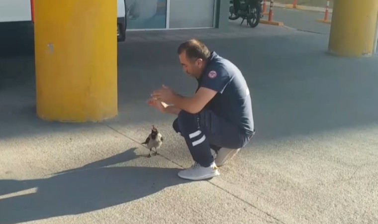 Erzincan Mengücek Gazi Eğitim ve Araştırma Hastanesi acil girişi önünde yürekleri ısıtan bir olay yaşandı. 112 acil sağlık ambulans şoförü, kendisine yaklaşan kargayı önce sevdi daha sonra elleriyle besledi. Karganın ürkek tavırlı olmamasını nedeniyle önce yaklaşıp seven daha sonra da elleriyle besleyen sağlık çalışanı ile karga arasında sevimli bir dostluk oldu. Ekmek parçalarıyla beslediği kargaya komut vermesi ve samimi davranışları görenleri gülümsetti. Yaşanan anlar ise, bir vatandaş tarafından saniye saniye cep telefonuyla görüntülendi.