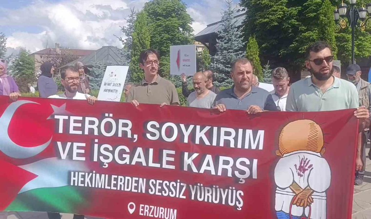 Erzurum’da, İsrail’in Gazze’ye saldırılarını protesto etmek için sağlıkçılar tarafından 36 haftadır kesintisiz olarak düzenlenen sessiz yürüyüş, bu hafta da devam etti.