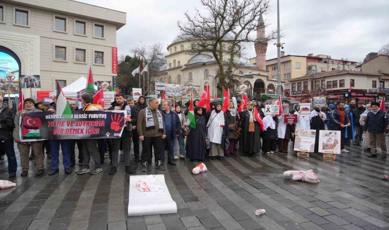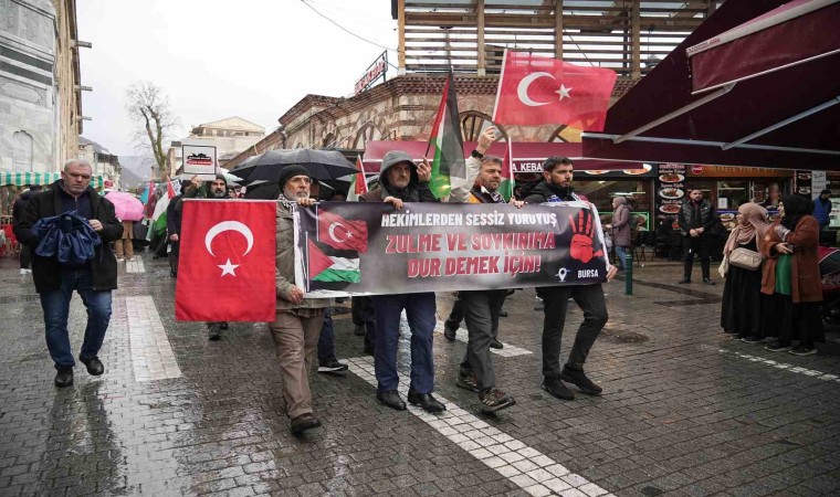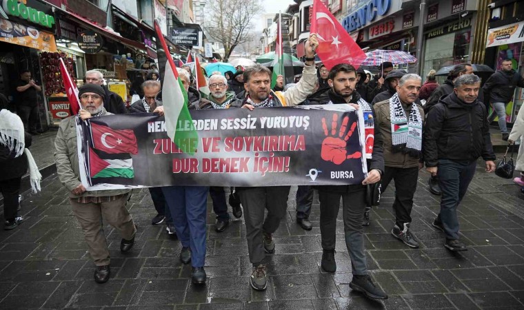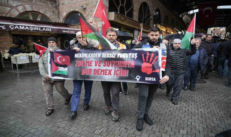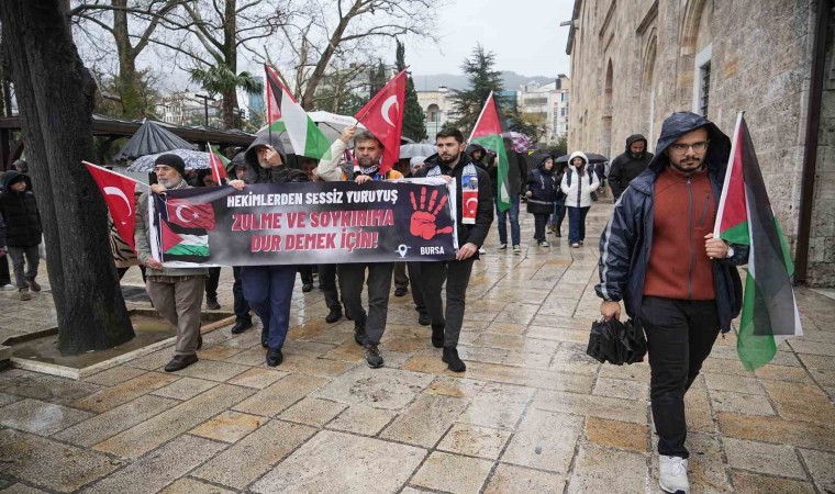 Bursa’da sağlık çalışanları İsrail’in Filistin halkına yaptığı zulmü protesto etmek ve öldüren doktorlar için sessiz yürüyüş gerçekleştirdi.
