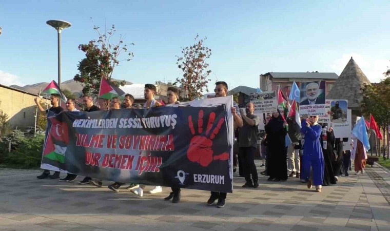 Tarihi Erzurum Kalesi etkinlik alanında bir araya gelen sağlık çalışanları, Türk ve Filistin bayrakları eşliğinde taşıdıkları döviz ve pankartlarla yürüdü. Burada grup adına basın açıklamasını İntörn Doktor Muhammet Haçyanoğlu yaptı.