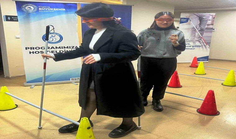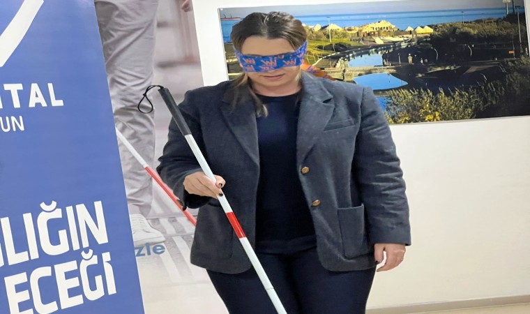 14 Ocak Beyaz Baston Görme Engelliler Haftası" etkinlikleri kapsamında gözleri bağlı şekilde yürümeye çalışarak, görme engelli bireylerin hayatlarını anlamaya çalıştı.
