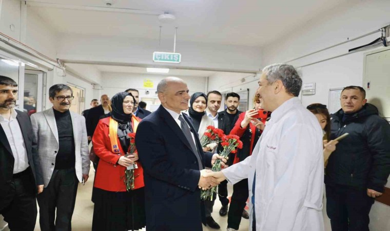 İlk olarak Çamlıtepe’de bulunan Körfez Devlet Hastanesini ziyaret eden Başkan Şener Söğüt, Başhekim Ömer Dağ ile bir araya geldi. Daha sonra da hastane içerisinde görev yapan sağlık çalışanlarının gününü kutlayan Başkan Söğüt, karanfil verdi.