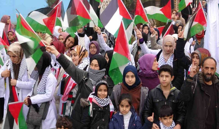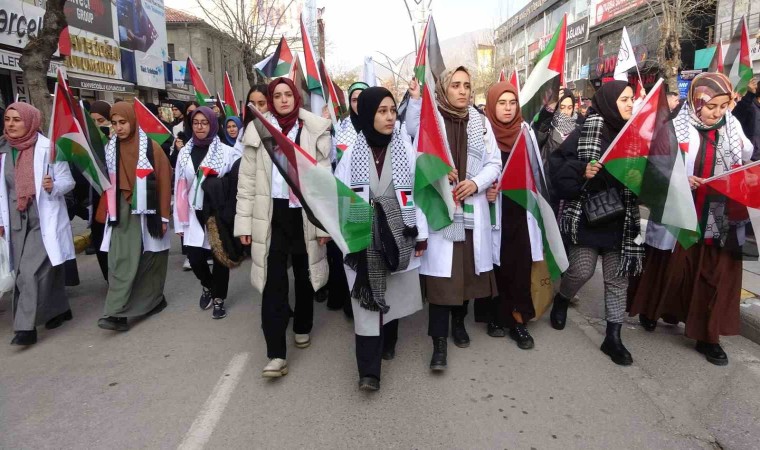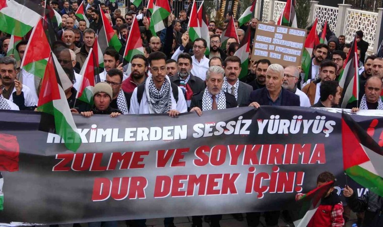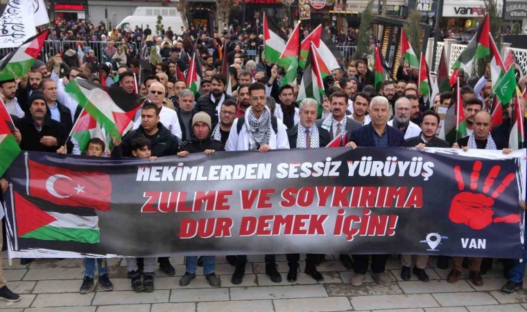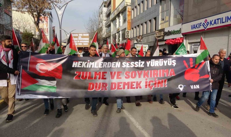 Van’da görev yapan sağlık çalışanları, Filistin’e yapılan saldırılara dikkat çekmek için "sessiz yürüyüş" düzenledi.