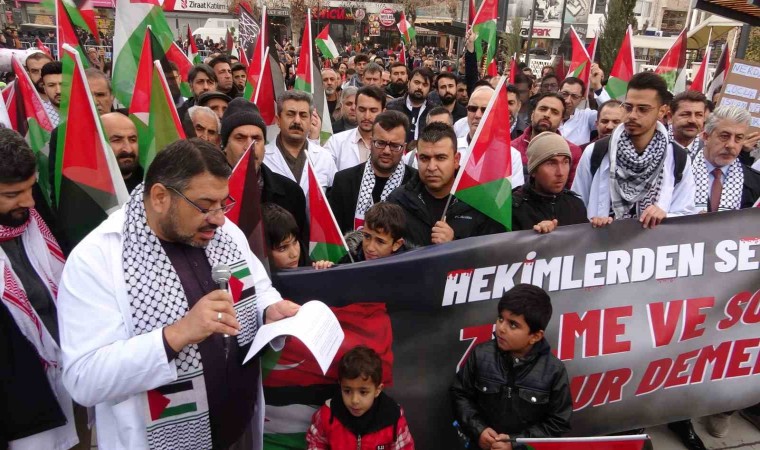 İsrail’in Gazze Şeridi’ne yönelik saldırıları iki ayı aşkın bir süredir devam ediyor. Dünyanın birçok yerinde olduğu gibi Türkiye’de de saldırılara protestolar sürüyor. Bu çerçevede Van’ın Beşyol Meydanı’nda bir araya gelen çok sayıda sağlık çalışanı, Cumhuriyet Caddesi’ndeki kent meydanına kadar slogan atmadan yürüdü.
