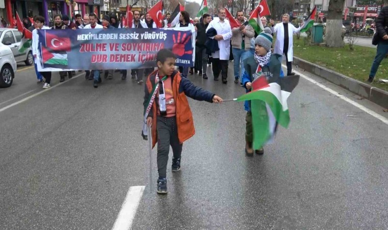 Kütahya’da sağlık çalışanları, İsrail’in Filistin halkına yaptığı zulmü protesto etmek için ‘sessiz yürüyüş’ gerçekleştirdi.
