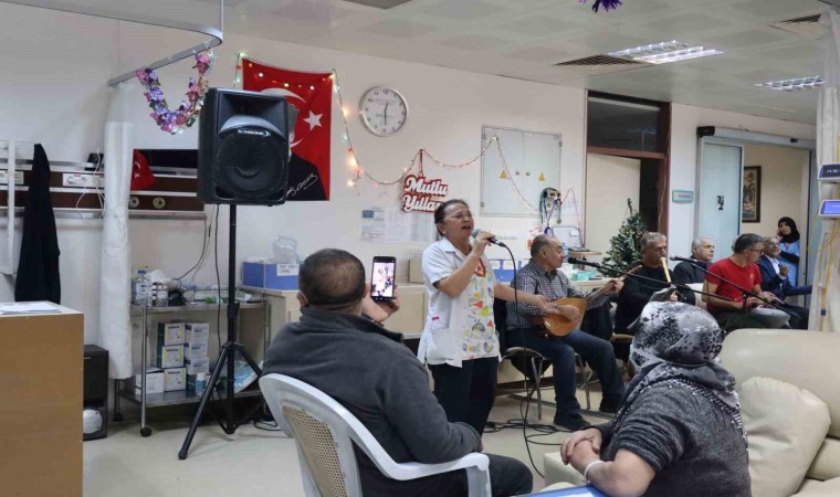 İzmir’de sağlık çalışanları, onkoloji servisinde tedavi gören kanser hastalarına moral konseri verdi.