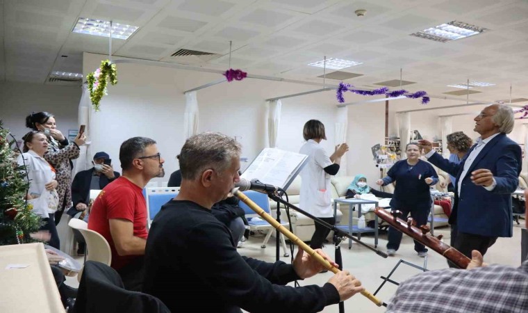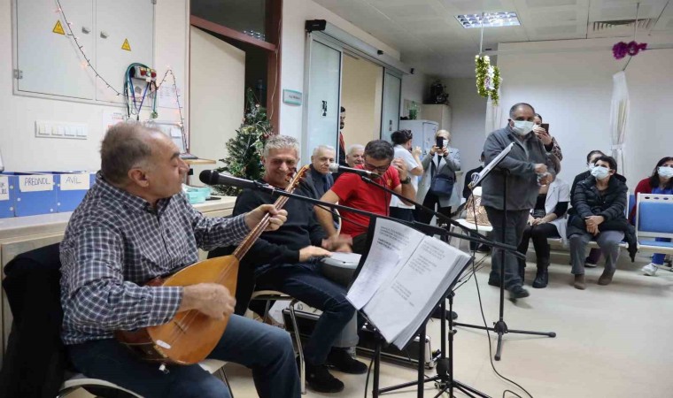 Programa dair konuşan İzmir Katip Çelebi Üniversitesi Atatürk Eğitim ve Araştırma Hastanesi Başhekim Yardımcısı Uzm. Dr. Sinem Albayrak, “Kemoterapi ünitemizde tedavi alan onkoloji hastalarımızın moral ve motivasyonu için çeşitli etkinlikler düzenlemekteyiz. Bu sene de yeni yıla girerken hastanemiz Türk Halk Müziği Korosu eşliğinde hastalarımızla buluştuk. Hastalarımızın tedavisine bir katkı ve pozitif yansıma olacağını düşünüyoruz. Hep beraber yeni yılı kutlayarak güzel bir zaman geçirdik. Hastalarımız zor bir tedavi sürecinden geçiyor. Onkoloji uzun bir tedavi yöntemi. Moralleri sağlıklarındaki gerileme hissiyle birlikte bozuluyor. Amacımız, hastaların bu ilaçlarla birlikte hastalığı yenmelerine yardımcı olmak. Psikolojik olarak destek olmak amaçlı biz de etkinlikler düzenliyoruz. Müzikler çalındı, şarkılar söylendi. Hastalar eşlik etti. Onlar için de güzel bir zaman oldu. Bizler de mutlu olduk” diye konuştu.