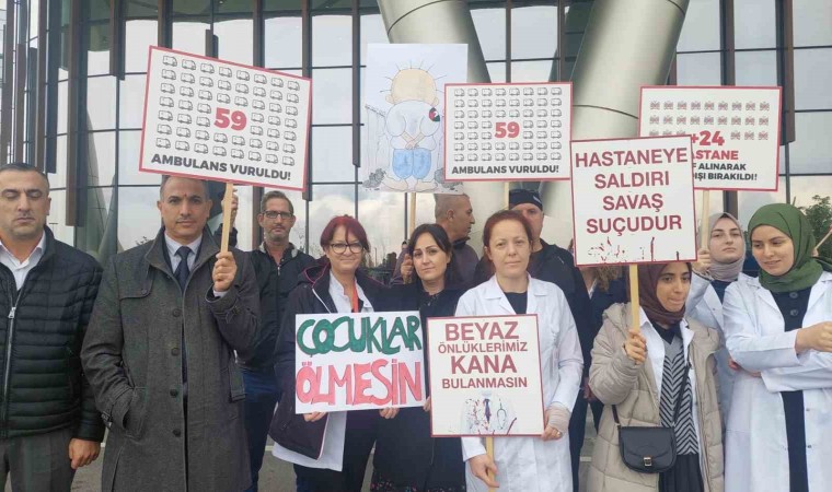 Tekirdağ’da sağlık çalışanları İsrail’in Gazze’ye yönelik saldırıları nedeniyle sessiz eylem gerçekleştirdi.