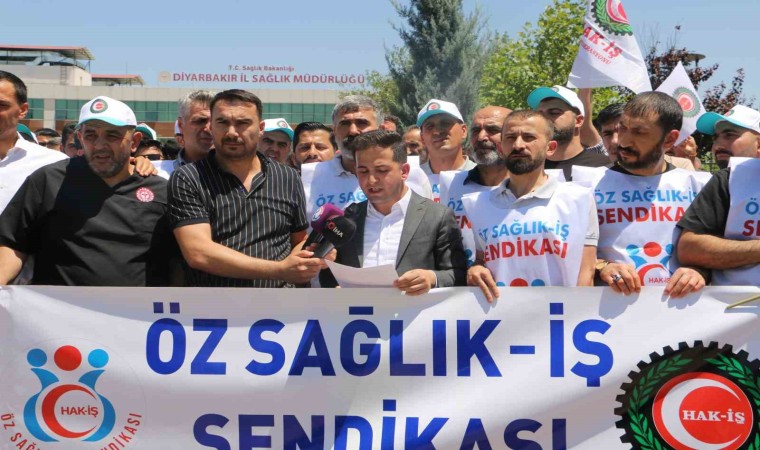 81 il ile eş zamanlı olarak saat 12.00’de basın açıklaması düzenleyen Öz Sağlık-İş Sendikası üyeleri, Diyarbakır İl Sağlık Müdürlüğü önünde toplandı. Burada sendika üyeleri adına açıklama yapan Öz Sağlık İş Sendikası Diyarbakır Şube Başkanı Mehmet Aküzüm, geriye dönük alacaklarının daha fazla geciktirilmeden tek kalemde ödenmesini istediklerini söyledi. 2023 yılının ocak ayından geçerli sağlık işçilerinin geriye dönük alacaklarının ödenmesi kararının üzerinden 46 gün geçtiğini belirten Aküzüm, “Sizlerin de yakından bildiği üzere Sağlık Bakanlığı bünyesinde çalışan sağlık işçilerinin yetkili sendikası Öz Sağlık-İş olarak 190 bin işçimiz, işveren sendikası TÜHİS ile imzaladığımız Toplu İş Sözleşmesi’nin üzerinden 46 gün geçti. Bu sözleşmede yer aldığı üzere işçinin 2023 Ocak ayından geçerli geriye dönük alacaklarının ödenmesi kararının üzerinden de 46 gün geçti. İşçi vefakardır, işçi cefakardır, işçi sabırlıdır. İşçi ülkesini, milletini, devletini sever. Hele sağlık işçisi belini doğrultmadan akşamı eder, bilir ki işini aksatsa bu ihmal bir insanın canına değer. Sendika olarak ilk günden beri defalarca masaya oturduk, geriye dönük alacakları bekletmeyin dedik. İşçiye nefes aldıracak bu toplu parayı kuşa döndürmeyin dedik. Önümüz Kurban Bayramı, işçi kurbanını kesebilsin dedik, vergi dilimini işaret ettik, ülke ekonomisinin zorluğunu gösterip alacakların bir an önce ödenmesi için çalmadık kapı bırakmadık” dedi.