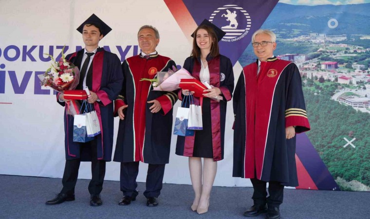 OMÜ Tıp Fakültesi Mezuniyet Töreni, Yaşam Merkezinde yapıldı. Törende OMÜ’den 300, Amasya Üniversitesinden ise 22 öğrenci mezuniyet heyecanı yaşadı. Törende Türkçe dönem birincisi Reha Koç ve İngilizce dönem birincisi Yiğit Şahinoğlu başarı belgeleri ve diplomalarını aldıktan sonra fakültenin kütüğüne isimlerini çaktılar. Daha sonra konuşma gerçekleştiren Koç ve Şahinoğlu, mezuniyetlerine kadar olan süreçte kendilerini destekleyen aile ve hocalarına teşekkür ederek, sağlık alanında doktorlara uygulanan şiddetin son bulması çağrısında bulundu.