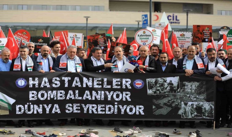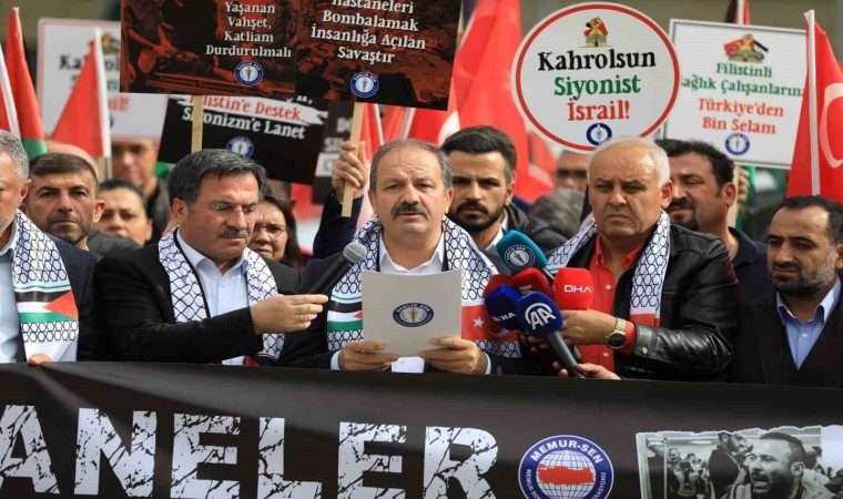 Sağlık-Sen, İsrail’in Filistin’e saldırılarına tepki için 81 ilde eş zamanlı basın açıklamaları gerçekleştirdi. Ankara Bilkent Şehir Hastanesi önünde bir basın açıklaması yapan Sağlık-Sen Genel Başkanı Mahmut Faruk Doğan, Gazze’de İsrail’in bombaladığı ve birçok sivil vatandaşın hayatını kaybettiği hastane saldırısına tepki göstererek, yapılan saldırıları kınadı. Gazze’de İsrail tarafından savaş suçu işlendiğine vurgu yapan Doğan, “Gazze’de bebekler, çocuklar, kadınlar, siviller katledilmekte. Hastaneler, okullar, camiler bombalanmakta. Sağlık-Sen olarak yaşanan bu vahşete kayıtsız kalmamız mümkün değildir. Bu soykırımı görmezden gelmemiz imkansızdır. Sivil ve masum insanlara yönelik saldırıları nefretle kınıyor, hayatlarını kaybeden Filistinli kardeşlerimize Cenab-ı Allah’tan rahmet diliyor, yaralılara şifalar temenni ediyoruz” dedi.