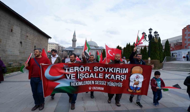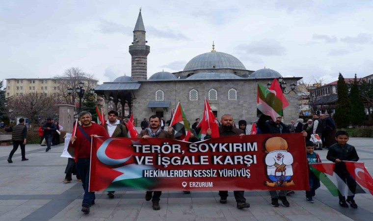 Sağlık çalışanları, Erzurum’da İsrail’in Gazze’ye yönelik saldırılarını protesto etmek için sessiz yürüyüşlerinin 22. haftasında bir kez daha buluştu.