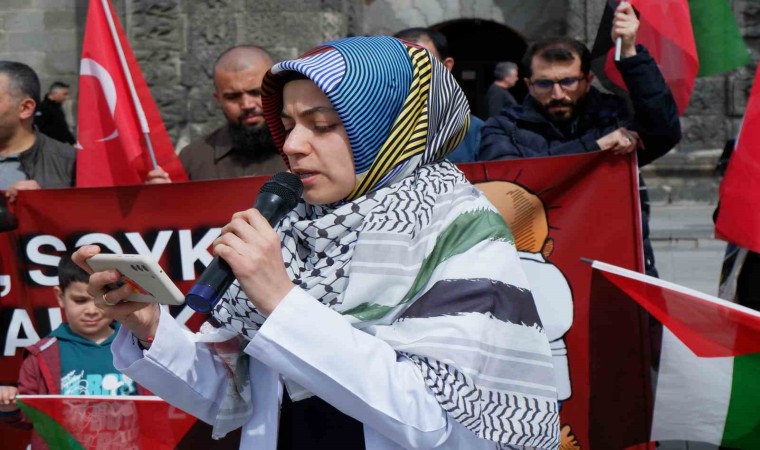 Sağlıkçılar adına bir konuşma yapan Dr. Kübra Kayaalp Göğebakan ise “Bugün burada Gazze’yi unutmayan, unutamayan sağlık çalışanlar olarak 22. kez bir araya geldik. Eylemlerimizi kar-kış demeden kış boyu devam ettirdiğimiz gibi bayram tatili dinlemeden de devam ettiriyoruz. Çünkü İsrail de Müslüman kardeşlerimize bayram seyran dinlemeden zulmediyor, çocuk-sivil bakmadan öldürüyor! Ramazan-iftar anlamadan aç bıraktı, aç bırakıyor! Sağlıkçı-hastane önemsemeden bombalıyor. O yüzden biz de az kişi olduğumuz günlerde bile sayımıza bakmadan, benimle kim var diye arkamıza dönmeden meydana atılıyoruz, Ben varım Allahım diyoruz! Defalarca kez duanın, bilinçlenmenin, duyurmanın, boykotun, infak etmenin öneminden bahsettik. O yüzden bugün öncekilere benzer bir bildiri metni okumak yerine farklılık yapalım ve konuk alalım diye düşündük. Bugün biz değil konuğumuz Kudüs konuşacak. Mescidi Aksayı üzerinde bulunduran, Filistin’in başkenti olan Kudüs konuşacak” dedi.