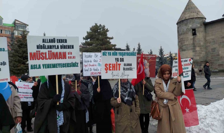 Lala Paşa Cami önünde bir araya gelen doktorlar, tıp ve eczacılık fakültesi öğrencileri, sağlık çalışanları ile vatandaşlar, Türk, Filistin ve Doğu Türkistan bayrakları eşliğinde taşıdıkları döviz ve pankartlarla Yakutiye Medresesi’ne kadar yürüdüler. Burada Grup adına açıklama yapan Bünyami Yeşilyurt okuyan “Elhamdulillah Gazze’de ateşkes ilan edildi. Bugün Gazze kazandı. Allah’a sığınanlar kazandı. Umutlarını hiç kaybetmeyenler kazandı. Gözleri yaşlı şekilde ‘Elhamdulillah’ diyen çocuklar kazandı. Evlatlarını feda eden anneler kazandı. Gazzede artık bomba sesleri değil zafer nidaları yankılanıyor. Siyonizm; tarihin en büyük yenilgisini yaşıyor. Bir sabah geldi kardan aydınlık ve daha niceleri gelecek inşallah. Önce Şam’ın zaferi şimdi Gazze zaferi Rabbim Gazze’nin ve Batı Şerianın İsrail’den tamamen kurtulduğu, Mescid-i Aksa’nın özgür olduğu günleri de görmeyi nasip etsin bize. Doğu Türkistanlı kardeşlerimizin Çin zulmünden kurtulduğu gün de birlikte sevinelim inşallah. Gazze’den içeri tarihte görülmemiş sayıda yardım kamyonu giriyor. İsrailin hapishanelerindeki yüzlerce masum kardeşimiz özgürlüğüne kavuşacak. Dünyanın gözleri baskıcı zorba işgalci İsrail’in üzerine çevrildi, şuana kadar sessiz sessiz yaptıkları zulümler artık bir tıkla her yere yayılacak. Ve daha neler neler kazanıldı, kazanılacak Allahın izniyle birlikte göreceğiz” şeklinde konuştu.