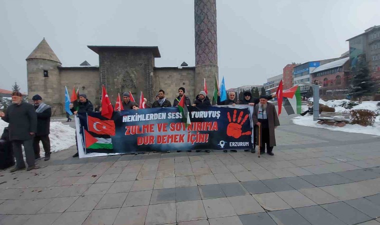 Erzurum’da görev yapan hekim ve sağlık çalışanları, İsrail’in Gazze’ye yönelik saldırılarını protesto etmek için sessiz yürüyüşlerini 63 haftadır sürdürüyor.