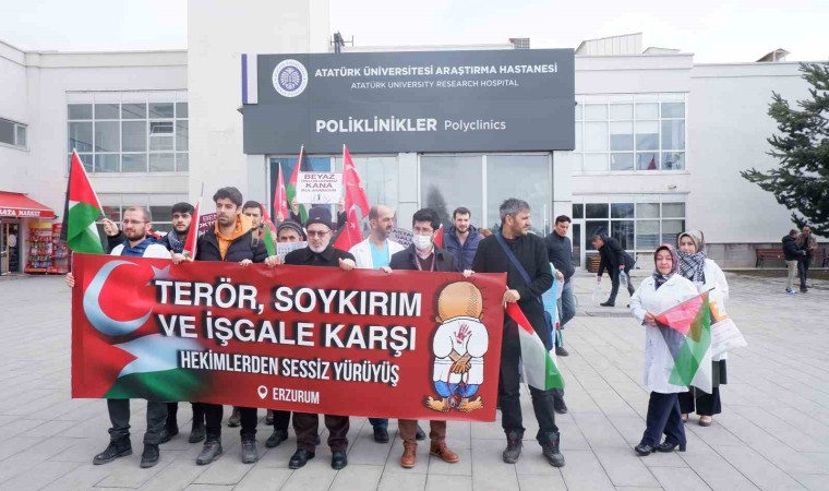 İsrail’in Gazze’ye yönelik saldırılarını protesto etmek amacıyla Erzurum’da görevli sağlık çalışanları sessiz yürüyüşlerinin 14. haftasında bir araya geldiler.