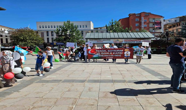 Sessiz yürüyüş sonrası grup adına konuşan Atatürk Üniversitesi Tıp Fakültesi Öğrencisi Şifanur Şeker, eylemlerini bayram tatiline rağmen devam ettirdiklerini belirterek, "Haklı davamızdan ve desteğimizden asla vazgeçmeyeceğiz. İsrail, Müslüman kardeşlerimize bayram seyran dinlemeden zulmediyor, çocuk, sivil bakmadan öldürüyor. Sağlıkçı, hastane önemsemeden bombalıyor. O yüzden biz de az kişi olduğumuz günlerde bile sayımıza bakmadan, benimle kim var diye arkamıza dönmeden meydana atılıyoruz" dedi.