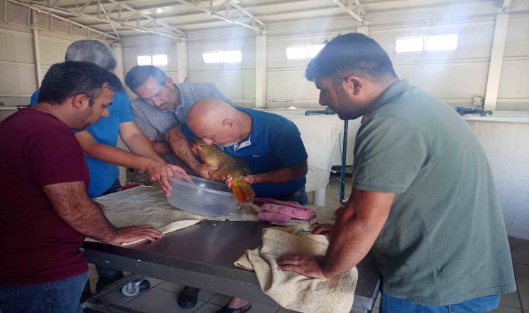 Elazığ’da Su Ürünleri Araştırma Enstitüsü Müdürlüğü tarafından sağımları yapılan sazan ve siraz anaçları baraj gölüne bırakıldı.