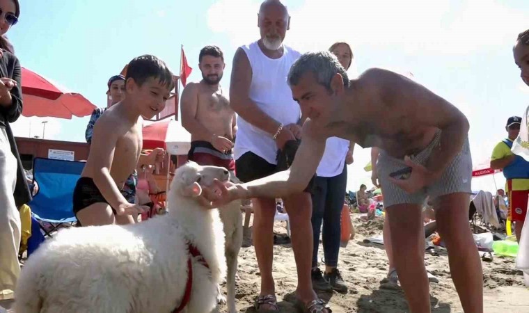 Sakarya’nın Karasu ilçesinde yaşayan İsmail Çakmak, yaklaşık iki ay önce sahiplendiği ve adeta çocuğu gibi bakarak yanından hiç ayırmadığı ‘İpek’ isimli kuzusu ile sahile indi. Minik kuzu sahilde ilgi odağı oldu.