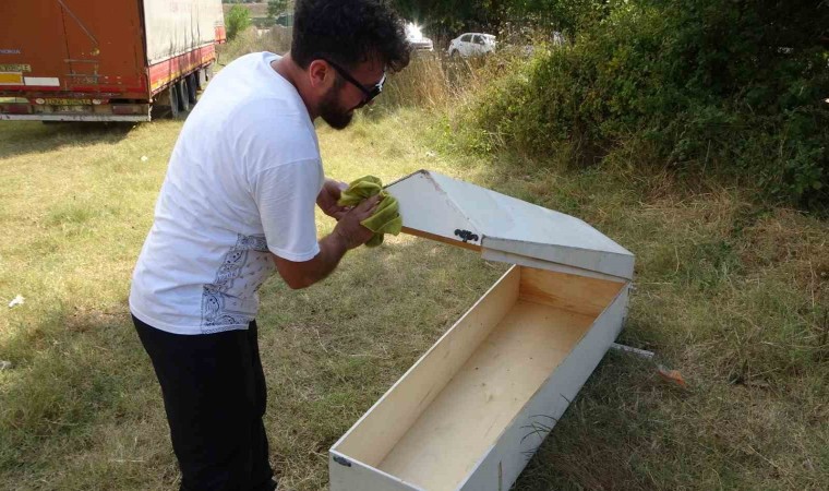 Pendik’te bir organizasyon şirketinde çalışan Yücel Korkmaz, tiyatro oyunlarında kullandıkları tabutu internet sitesi üzerinden satışa çıkardı. ’Sahibinden satılık az kullanılmış tabut’ ilanını gören vatandaşlar şaşkınlıklarını gizlemeyerek ilan sahibine mesaj attı. Kimileri ilan sahibi Korkmaz ile fiyat pazarlığına girdi, bazıları ise ’Bize ölümü hatırlattın’ mesajları attı. Sahibinden az kullanılmış tabutu daha önce 350 TL’ye satışa çıkaran Yücel Korkmaz, ilanını daha sonra güncelleyerek fiyatı bin 500 TL’ye çıkardı. Korkmaz, yaptığı açıklamada, “İlanı sosyal medyaya koydum, 350 TL fiyat ile. Bir arkadaş da bana yazdı ‘250 TL olur mu?’ dedi. Ben de ‘Sana bedava olsun ne yapacaksın?’ diye sordum, bana gülücük mesajı attı. Ama şimdi güncelledim, tabut ikinci el fiyatına, yeni gibi, tiyatrolarda kullandık çok hasarı yok, alıcısı varsa benle iletişime geçebilir, şimdiden hayırlı olsun. Birkaç kişi şaşkın ifade içeren emoji attı. Şaşırdılar çoğunlukla, şaşırıyorlar. Sosyal medyaya attığımda bazıları ‘Ne güzel bize ölümü hatırlattın’ diye mesaj attılar. Mesaj atanlara ‘Ne yapacaksınız?’ diye sorduğumda ‘Merak ettik kullanmayacağız’ dediler. Tabut yapan dükkanların marangozların iletişimleri internette var ama böyle ikinci el tabut satışı yapan hiç görmedim, ben de bir farkındalık olsun diye, hem de ölümü hatırlatmak için böyle bir şey yaptım. Bir gün bu tabutun da lazım olacağını hatırlatmak istedim. Yaklaşık 6 senedir bu tabut biz de tiyatrolarda kullandık, bazen depoda gördüğümüz zaman ölümü hatırlatıyordu ürperti hissettik. Boş bile olsa insanı soğuk bir duyguya sokuyor, ama ölümü de hatırlamak gerekiyor. Tabut için sosyal medyada Beyaz Melek, Beyaz At gibi yorumlar geldi. Kur fiyatları da arttığı için fiyat arttı, şu an bin 500 TL’ye satıyorum.” dedi.