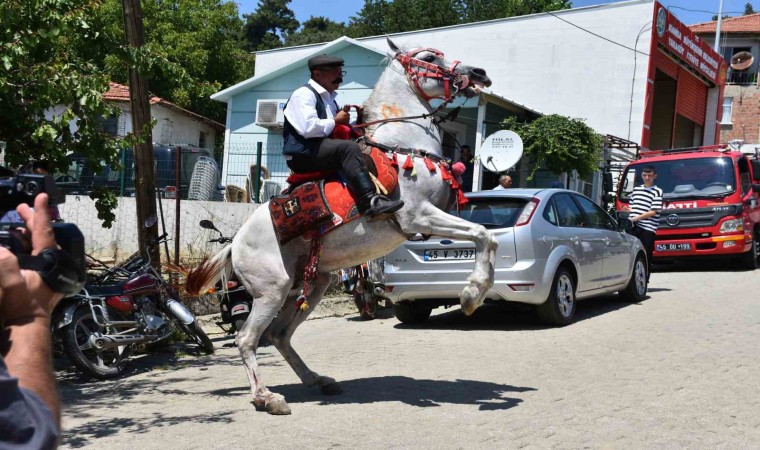 Mahallede İlayda-Mehmet Can çiftçinin düğünleri de atlı gelenekle beraber bir hayli ilginç görüntülere sahne oldu. Gelin alma geleneğinin sona ermesinin ardından at sahibi Mustafa Yalvaç, atından inerek karşılıklı harmandalı oynadı. Çeşitli örtülerle süslenen atın sahibi Mustafa Yalvaç karşısında sergilediği oyun figürleri izleyenleri hayretler içerisinde bıraktı. Büyük bir ilgiyle izlenen oyunun ardından Mustafa Yalvaç, sıcaklayan atını suyla serinletmeyi de ihmal etmedi.
