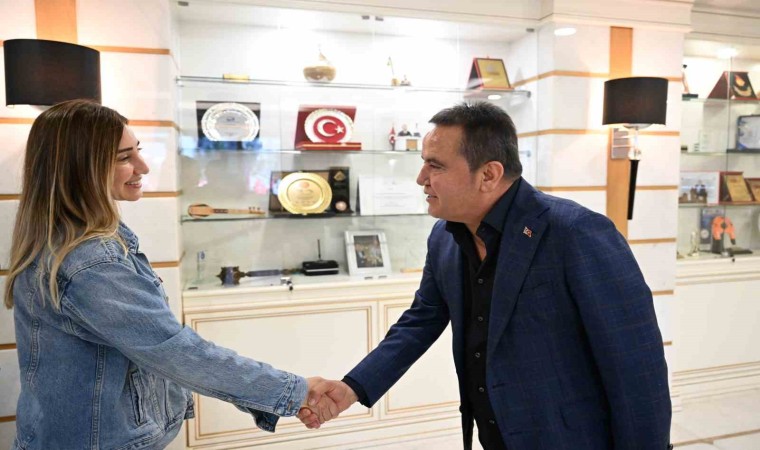 Başkan Muhittin Böcek, milli sporcu Şahika Ercümen ile bir sürü sohbet ederek, günün anısına bir plaket takdim etti. Başkan Böcek, 28 Ekim Cumartesi günü gösteri dalışı yapacak milli sporcu Şahika Ercümen’e başarılar diledi.