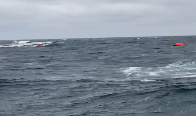 Ekipler, fırtınalı havada ulaştıkları kurtarma bölgesinde boş bir can salı tespit ettiler. O anlar ise kamera ile an be an kaydedildi.