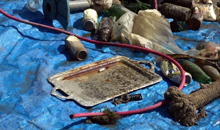 Sahil güvenlik ekipleri cam şişelerden, metal kutulara, plastik boru, tepsi, cam tabak, kupa bardağı, araç lastikleri ve metrelerce uzunluktaki halat ve demire kadar bir çok atık maddesi denizden çıkardı. Dalgıçların denizin dibinde bulduğu atıklar, sahilde bekleyen diğer ekiplerin yardımıyla karaya çıkartıldı.