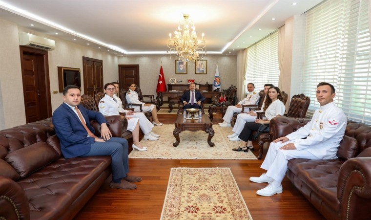 Mersin Valisi Ali Hamza Pehlivan, Sahil Güvenlik Komutanlığı’nın 42’inci kuruluş yıldönümü münasebetiyle Sahil Güvenlik ve Akdeniz Bölge Komutanı Tuğamiral Oğuz Bavbek ve beraberindeki teşkilat mensuplarını kabul etti.