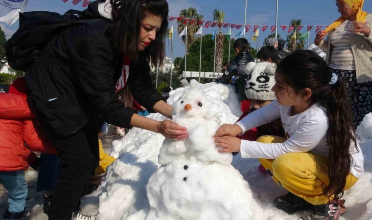 Mersin Erdemli’de belediye ekipleri tarafından sahil kenarına getirilen yaklaşık 100 kamyon kar ile festival düzenlendi çocuklar sucuk ekmek eşliğinde muhteşem bir gün geçirdi.
