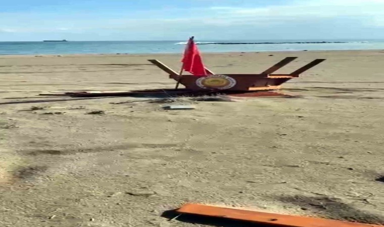 Sakarya’nın Karasu ilçesinde sahilde gece saatlerinde oluşan hortum cankurtaran kulesini yerle bir etti.