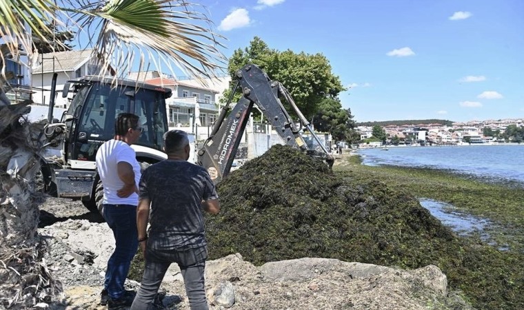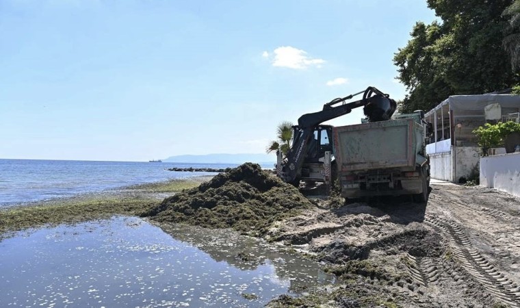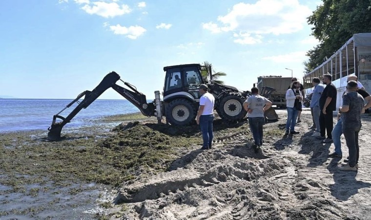 Tekirdağ merkez Süleymanpaşa ilçesi Değirmenaltı Mahallesi sahilinde temizlik çalışması başlatıldı. Kepçeyle toplanan yosunlar kamyonlara doldurularak götürüldü.