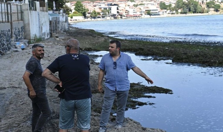 "Alkaya Değirmenaltı yolunun birleştiği alandayız. Doğru bir yapılanma yapılamadığı için, bir mühendis ile birlikte çalışılmadığı için, mendireklerdeki hatalardan ve doğal dengenin de bozulmasından dolayı yosun ile birlikte burada pis bir koku oluyor. Kokunun yanı sıra çevre kirliliği görüntüsü oluşuyor. İnsanlar denize giremiyorlar. Bahçelerinde oturamıyorlar, çaylarını bile içemiyorlar. Vatandaşımız konu ile ilgili şikayetini iletti. Belediye Başkan Yardımcım, Fen İşleri Müdürüm, Park Bahçeler Müdürüm, herkes burada. Ben de belediye başkanı olarak koştum geldim. Sahili kısa bir süre içinde temizleyeceğiz."
