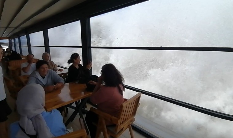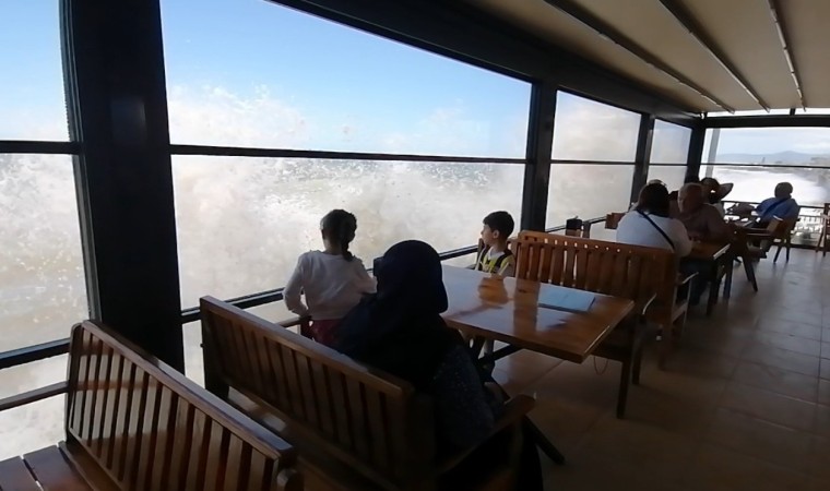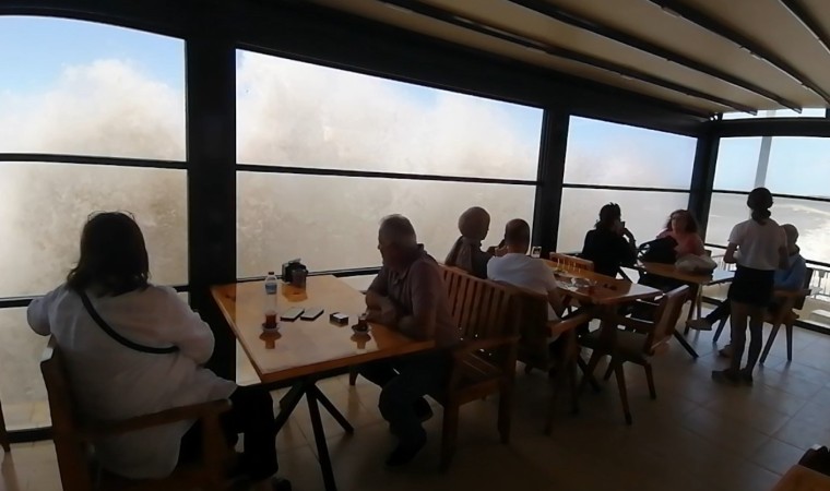 İşletme sahibi Abdurrahman Özcan ise, Karadeniz’in hırçın dalgalarının boyunun bazen 2 metrenin de üzerine çıktığını ve kafede bulunan müşterilerinin dev dalgaları büyük bir heyecanla izlediğini söyledi.