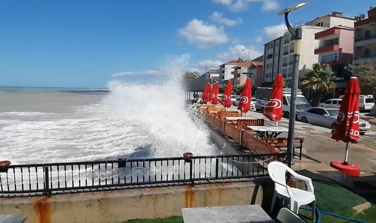 Kastamonu’nun Çatalzeytin ilçesinde etkili olan şiddetli rüzgar hayatı olumsuz etkiledi. Rüzgar ile birlikte Karadeniz’de büyük dalgalar oluştu. Boyu yer yer 2 metrenin üzerine çıkan dalgalar sahil kenarında bulunan bir kafenin adeta duvarını dövdü.