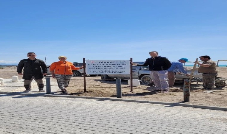 Antalya’nın Manavgat ilçesinde Sorgun-Side sahilinde deniz kaplumbağalarının yuvalama alanı olduğunu belirten uyarı tabelaları asıldı.