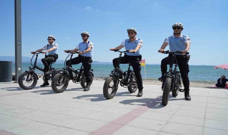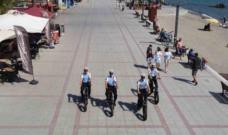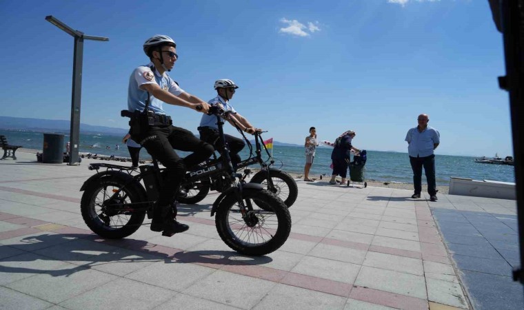 Balıkesir’in Edremit ilçesinde Emniyet Müdürlüğüne bağlı elektrikli bisikletli polis ekibi "Martı Timleri", plaj ve sahillerin güvenliği ile asayişinin sağlanması amacıyla görev yapıyor.