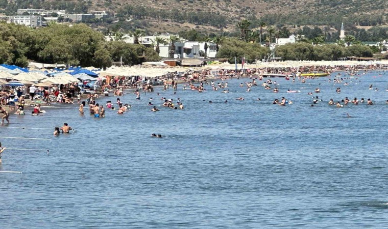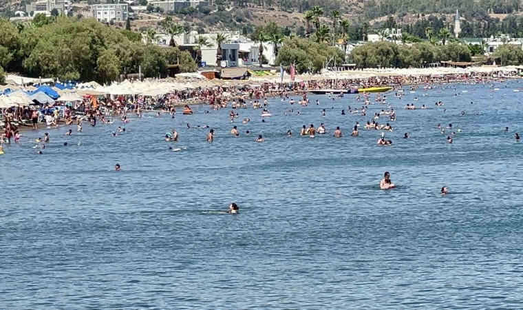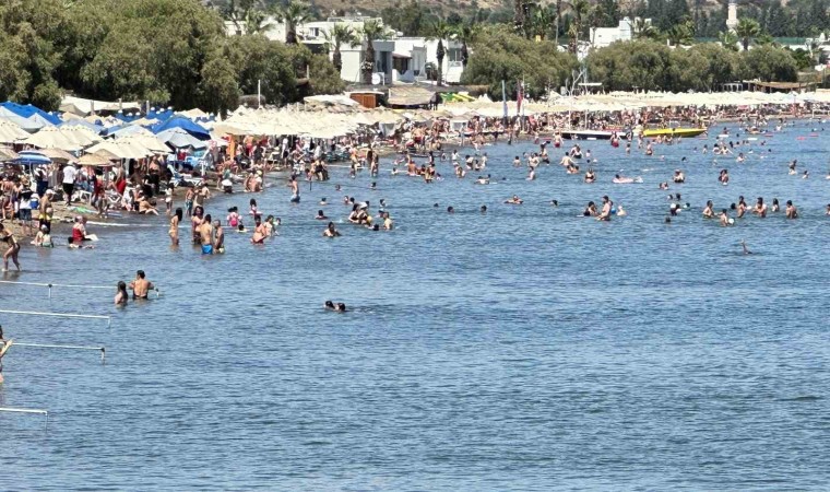 Bayram tatilinin Bodrum’da geçiren yerli turistler sahillere akın etti. Bayram’ın 3’üncü günü sahillerde adım atacak yer kalmadı.