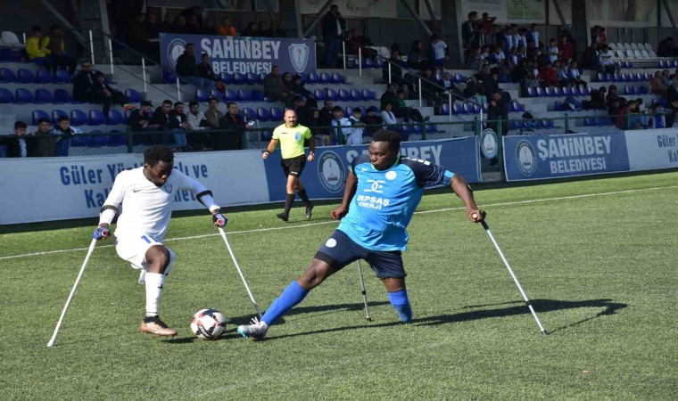Şahinbey Belediye Gençlik ve Spor Kulübü Ampute Futbol Takımı, ligin önemli takımlarından Depsaş Enerji Spor Kulübü Ampute Futbol Takımını kendi evinde 5-0 mağlup ederek ligdeki iddiasını ortaya koydu. 3 Aralık Dünya Engelliler Günü’nde tüm engelleri ortadan kaldırarak önemli başarılar kazanan Ampute Futbol Takımı Sporcuları ortaya koydukları performansla vatandaşların ve sporseverlerin takdirini topluyor. Oldukça çekişmeli geçen karşılaşmanın ilk yarısını mavi-beyazlı ekip 15. dakika İbrahim Halil Esen ve 24 dakikada Mohammed Mubarık attığı gollerle 2-0 önde tamamladı. İkinci yarıya hızlı başlayan Şahinbey Belediye Gençlik ve Spor Kulübü Ampute Futbol Takımı 35 dakikada Feyyaz Gözaçık’ın, 47 ve 50 dakikalar da Yussıf Yahaya’nın attığı gollerle karşılamadan 5-0 galip ayrılmasını bildi.