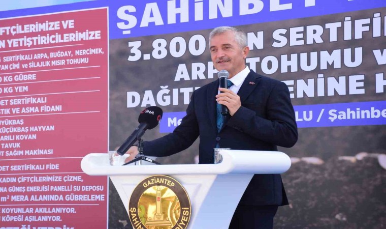 Törende açıklamalarda bulunan Şahinbey Belediye Başkanı Mehmet Tahmazoğlu ise çiftçinin ve hayvan yetiştiricilerinin her zaman yanında olduklarını belirterek, “Çiftçilerimize 2 bin ton gübre, bin ton arpa, 800 ton da buğday olmak üzere toplamda 3 bin 800 ton dağıtımı gerçekleştiriyoruz. Tohumlarımız TİGEM’in sertifikalı tohumları. Çiftçilerimizin verimli ürün alması noktasında gerçekten önemli olduğunu düşünüyoruz. İlk buğday dağıtımı ile başladık ve daha sonra çiftçilerimizin talepleri doğrultusunda projelerimizi geliştirerek desteklerimizi arttırdık. 33 milyon 500 bin adet fide dağıtımı gerçekleştirdik. Bunun dışında hayvan yetiştiricilerimiz için hayvan yemi ve meralara 11 tane su kuyusu açtık. Köylerde hayvancılık yapmak isteyen ama durumunda olmayan vatandaşlarımıza 2 tane gebe inek veya 16 koyun 1 koç verdik. Sadece yem, buğday, arpa ve gübre dağıtımında verilen destek 7 bin 300 kamyon yapıyor. Diğer verilen destekleri de kattığımızda çiftçimize yaklaşık 10 bin 000 kamyon destek sağlamışız. Yani yapıyormuş gibi değil. Gerçekten çiftçiye destek oluyoruz ve bu desteklerin artarak devam edeceğini çiftçilerimize müjdeliyorum” ifadelerini kullandı.