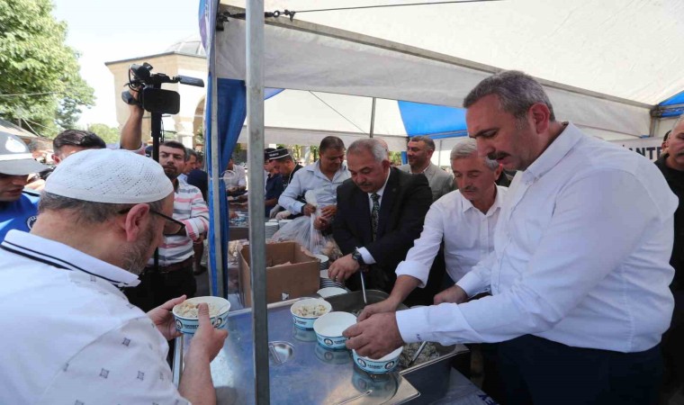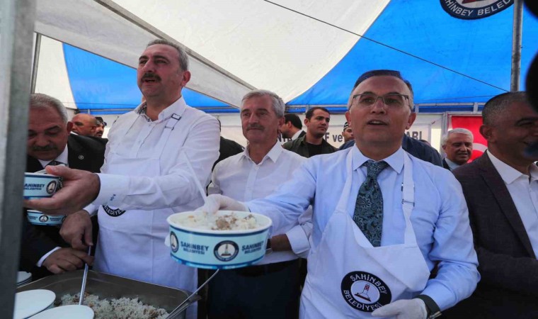 Şahinbey Belediye Başkanı Mehmet Tahmazoğlu, AK Parti Grup Başkan Vekili ve Gaziantep Milletvekili Abdulhamit Gül, Gaziantep Valisi Kemal Çeber, AK Parti Gaziantep Milletvekilleri İrfan Çelikaslan, Mesut Bozatlı, AK Parti İl Başkanı Murat Çetin, YÖK Başkanı Erol Özvar, Gaziantep Esnaf ve Sanatkarlar Odası Başkanı İsmet Özcan ve Gaziantep Kasaplar ve Celepçiler Odası Başkanı Bekir Özsert ile birlikte Ahilik Haftası nedeniyle Ulu Cami’nde pilav dağıtımı gerçekleştirdi.