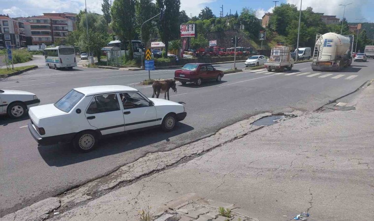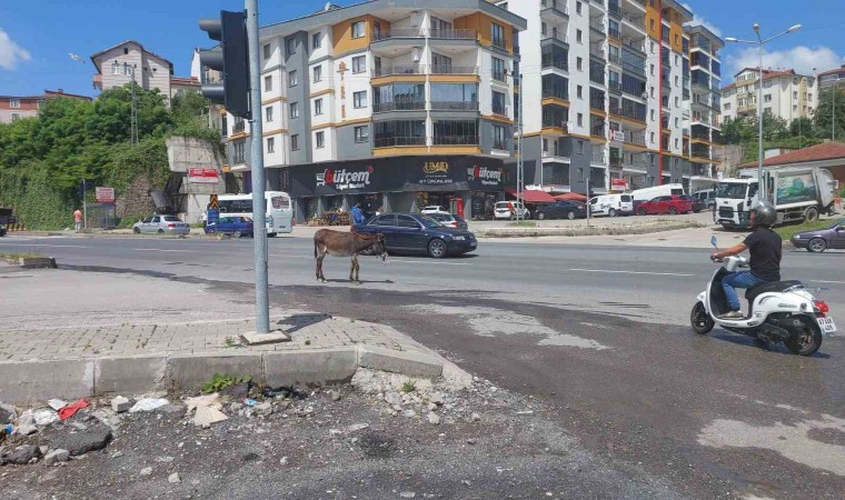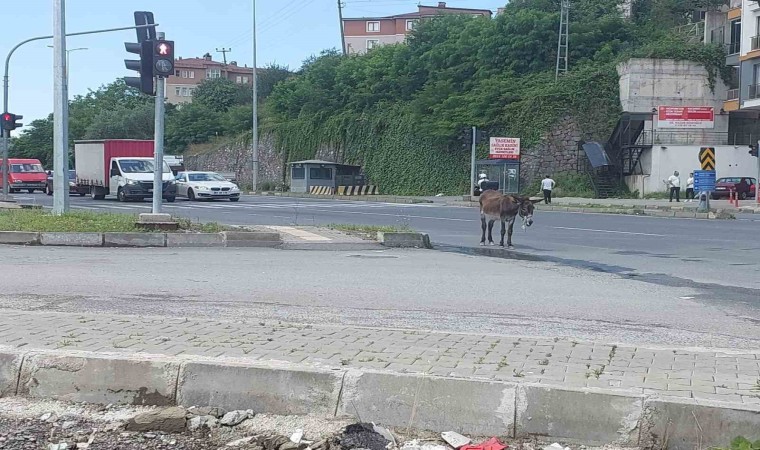 Zonguldak’ın Ereğli ilçesinde sahipsiz eşek, sürücülere zor anlar yaşattı.