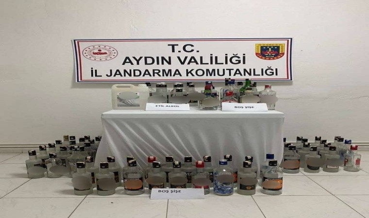 Aydın İl Jandarma Komutanlığı KOM Şube Müdürlüğü ve Kuşadası İlçe Jandarma Komutanlığı ekiplerince kaçak ve sahte alkol imalatı ile satışına yönelik koordineli çalışmalarına aralıksız devam ediyor. Edinilen bilgiye göre ekipler, Güzelçamlı Mahallesi’ndeki bir işyerinde sahte alkol imal edildiğini tespit etti. Baskın için düğmeye basan ekipler, E.H. isimli şüpheliye ait işyerine operasyon düzenledi. Yapılan baskında şüpheli E.H. kıskıvrak yakalanırken, işyerinde yapılan aramada 1 adet 100 cl rakı, 5 adet 70 cl rakı, 1 adet 35 cl rakı, 1 adet 100 cl vodka, 144 adet çeşitli marka ve ebatlarda kullanılmış boş alkol şişesi ve 1 adet kullanıma hazır yaklaşık 5 litre etil alkol ele geçirildi. Gözaltına alınan şüpheli hakkında adli işlem başlatıldı.